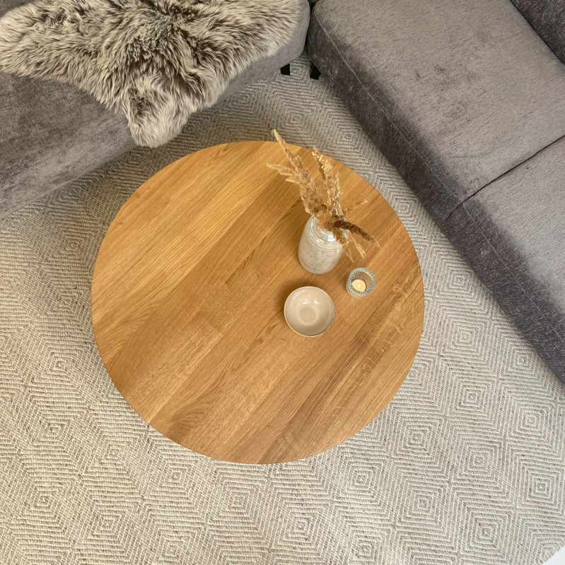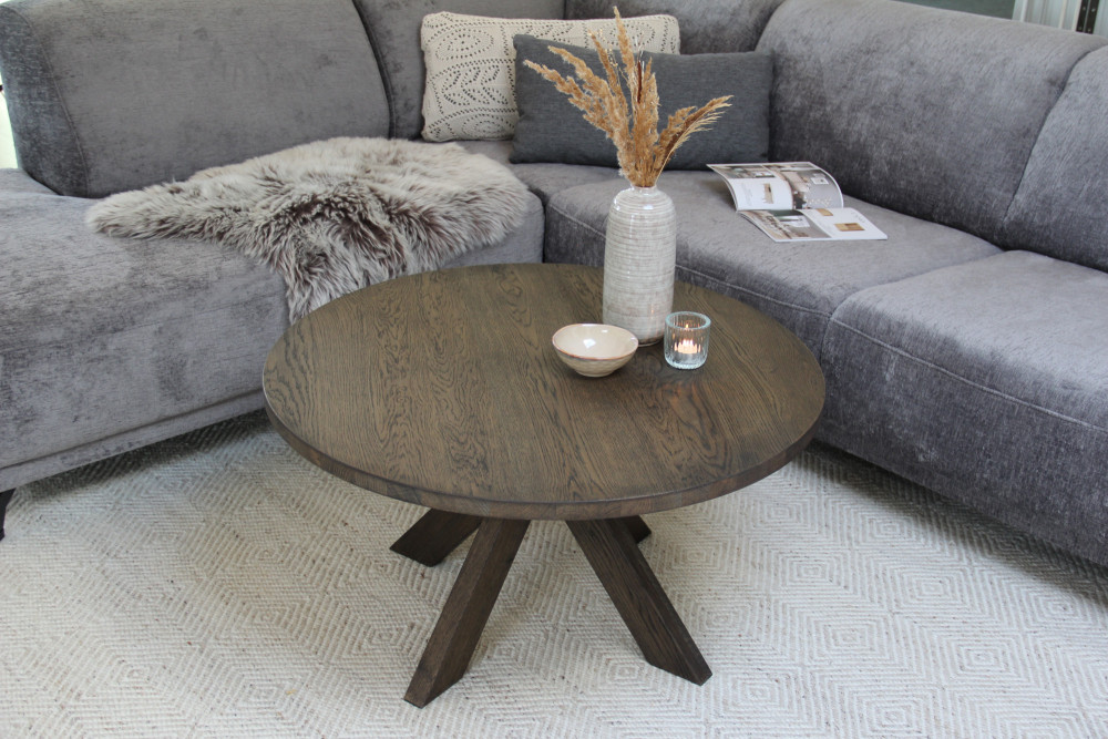 CASØ Gro coffee table with cross legs is a round and rustic coffee table in solid oak. The round shape gives a light expression to the otherwise solid design. The cross leg is placed under the centre of the table top.