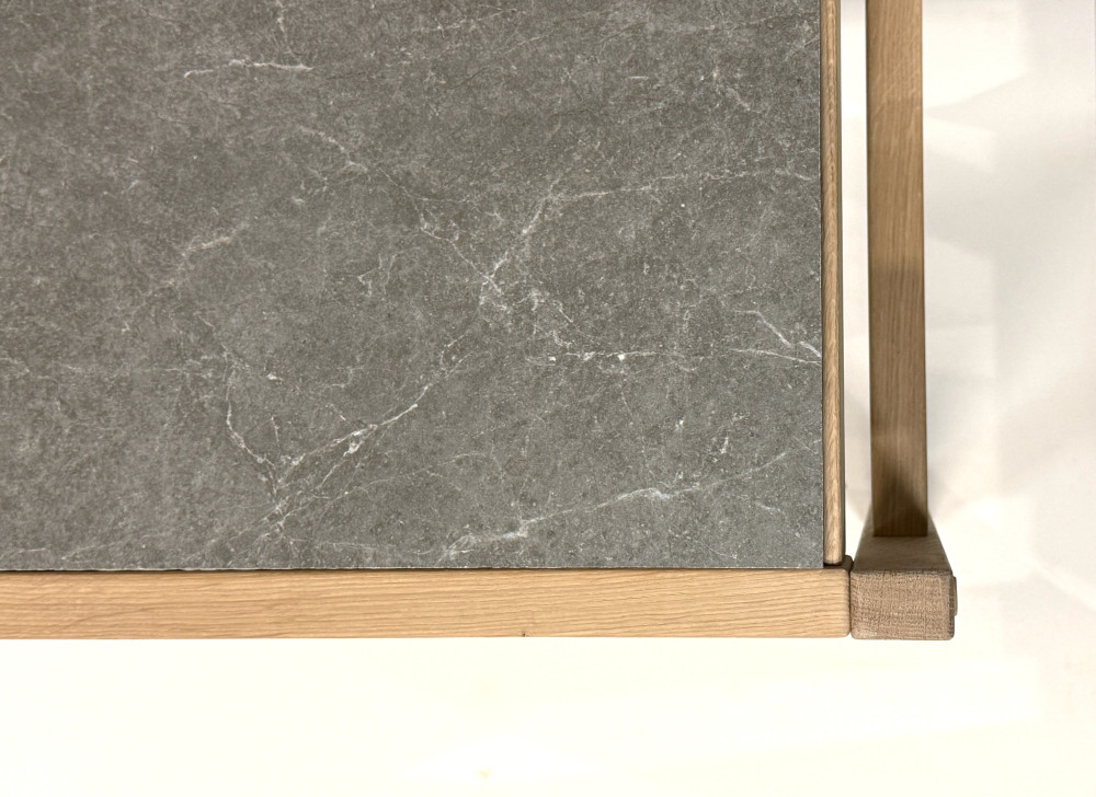 Den keramiske topplade fås i to farver, som giver bordet hver sit udtryk: