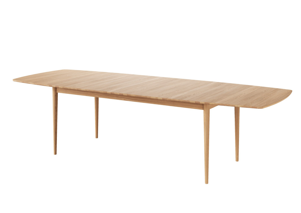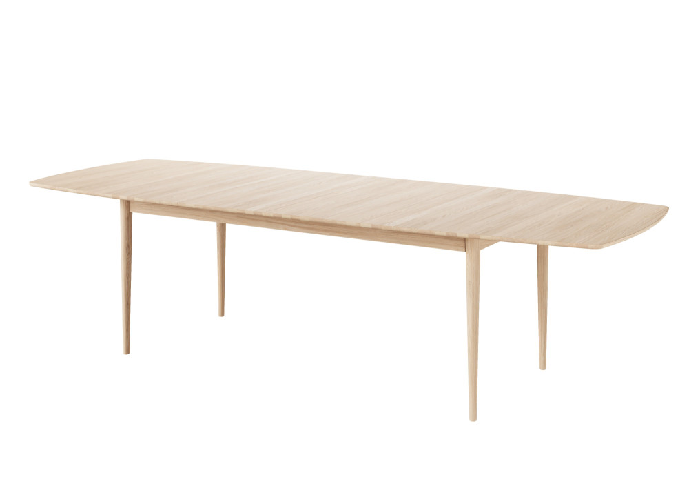 Tillægspladerne er ligeledes lavet i massivt egetræ med samme åreretning som spisebordet og lagerføres i hvidolie og naturolie.