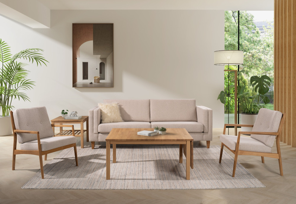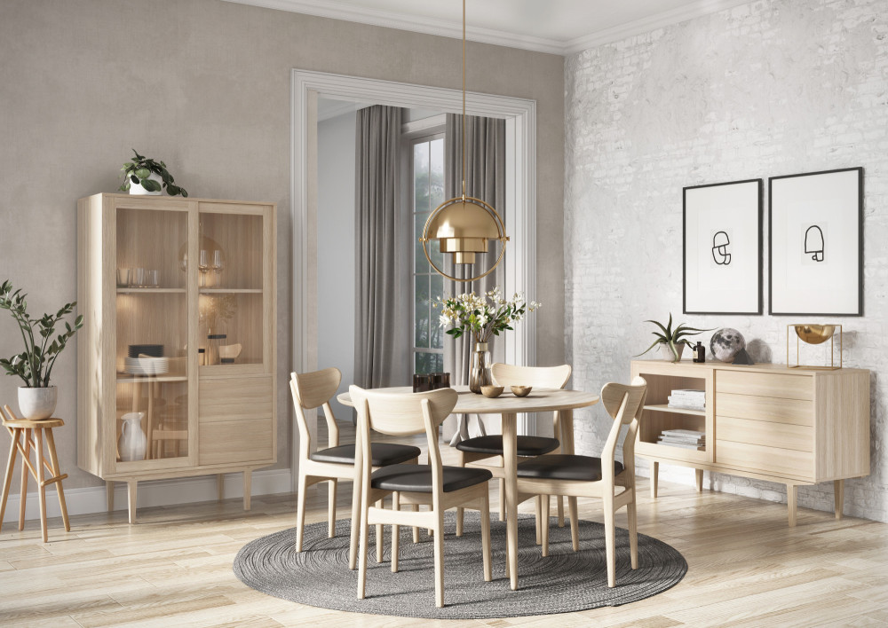 See all the furniture in the seriesSerie af sofaborde og spiseborde i let og lyst design